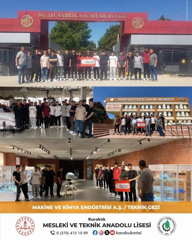 Okulumuz Metalürji Teknolojisi Alanı öğrencilerimiz alan öğretmenlerimiz ile birlikte Kırıkkale Makine ve Kimya Endüstrisi A.Ş. Fabrikasına teknik gezi, ardından Ankara Teknoloji Müzesi ve Anıtkabir ziyareti yapmışlardır.