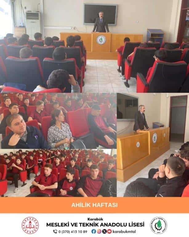 Ahilik Haftası’nda Karabük Mesleki ve Teknik Anadolu Lisesi öğrencileri, okulumuz Tarih Öğretmeni Kerim Özdemir’in anlatımıyla atalarımızın meslek ahlaklarını anlamak ve insanca yaşama sanatlarını tanımak için Ahilik Programı’na katıldılar.